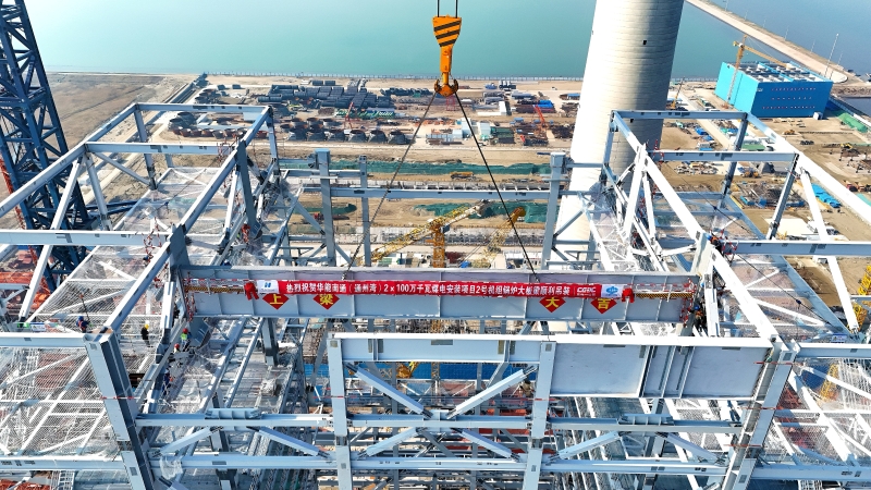12月17日上午,华能南通(通州湾)2X100万千瓦煤电安装工程项目在施工现场举行2号锅炉大板梁吊装仪式。