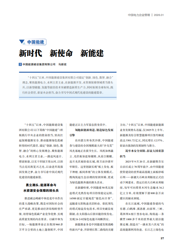 中国电力企业管理:新时代 新使命 新能建