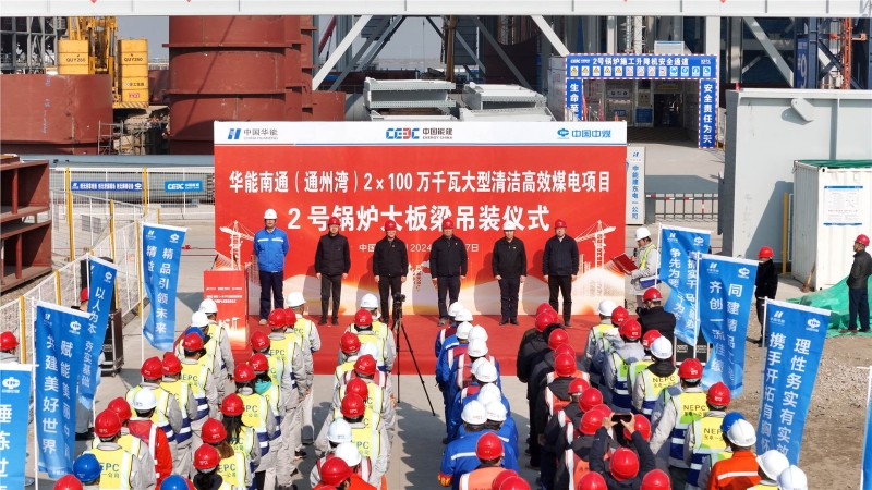 12月17日上午,华能南通(通州湾)2X100万千瓦煤电安装工程项目在施工现场举行2号锅炉大板梁吊装仪式。